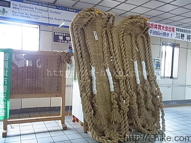 駅構内に展示されているおおきいなわらじ。