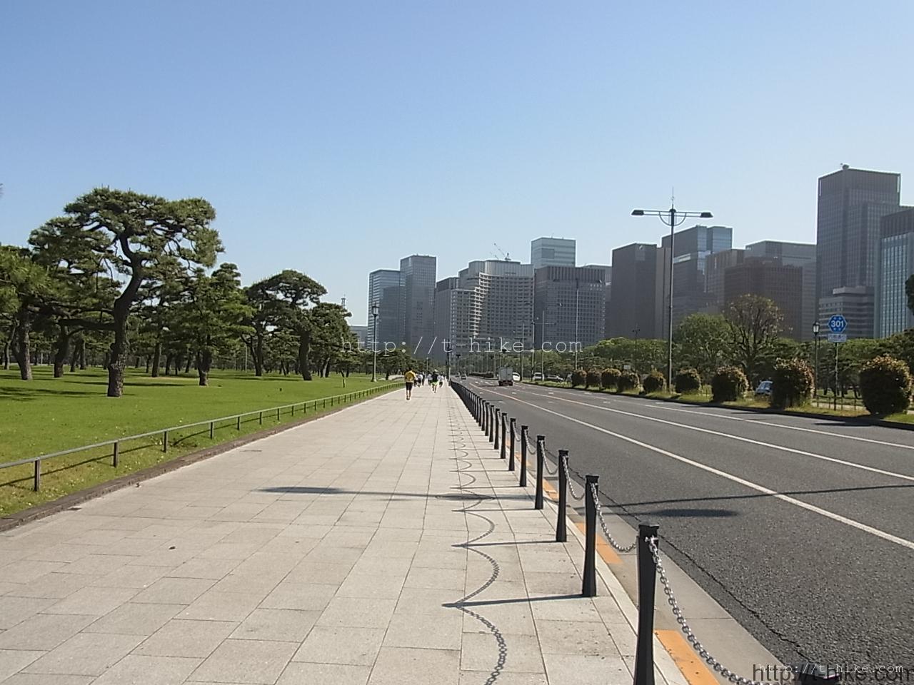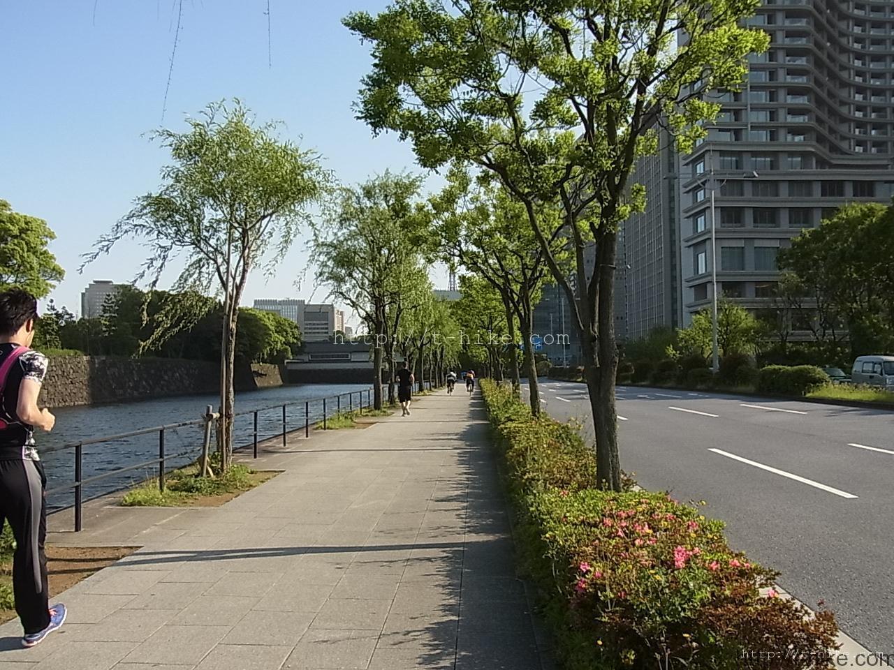 皇居の近くに来ると予想外に風が吹いていました。パーカーを着ていたのでちょうどよい感じ。でもこのあと風がやむと暑いです。