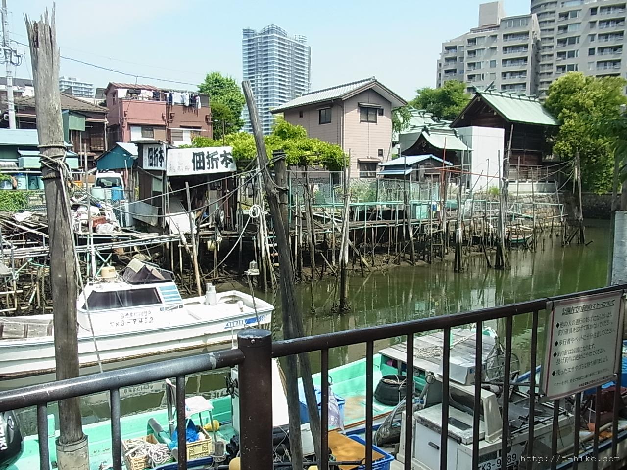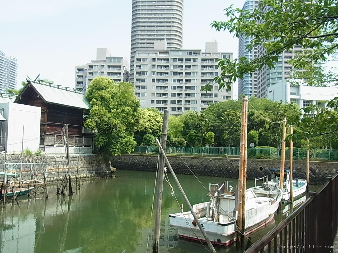 水が抜かれていました。この一角だけが月島の良い雰囲気が残っています。でも、どんどん浸食されていく感じ。