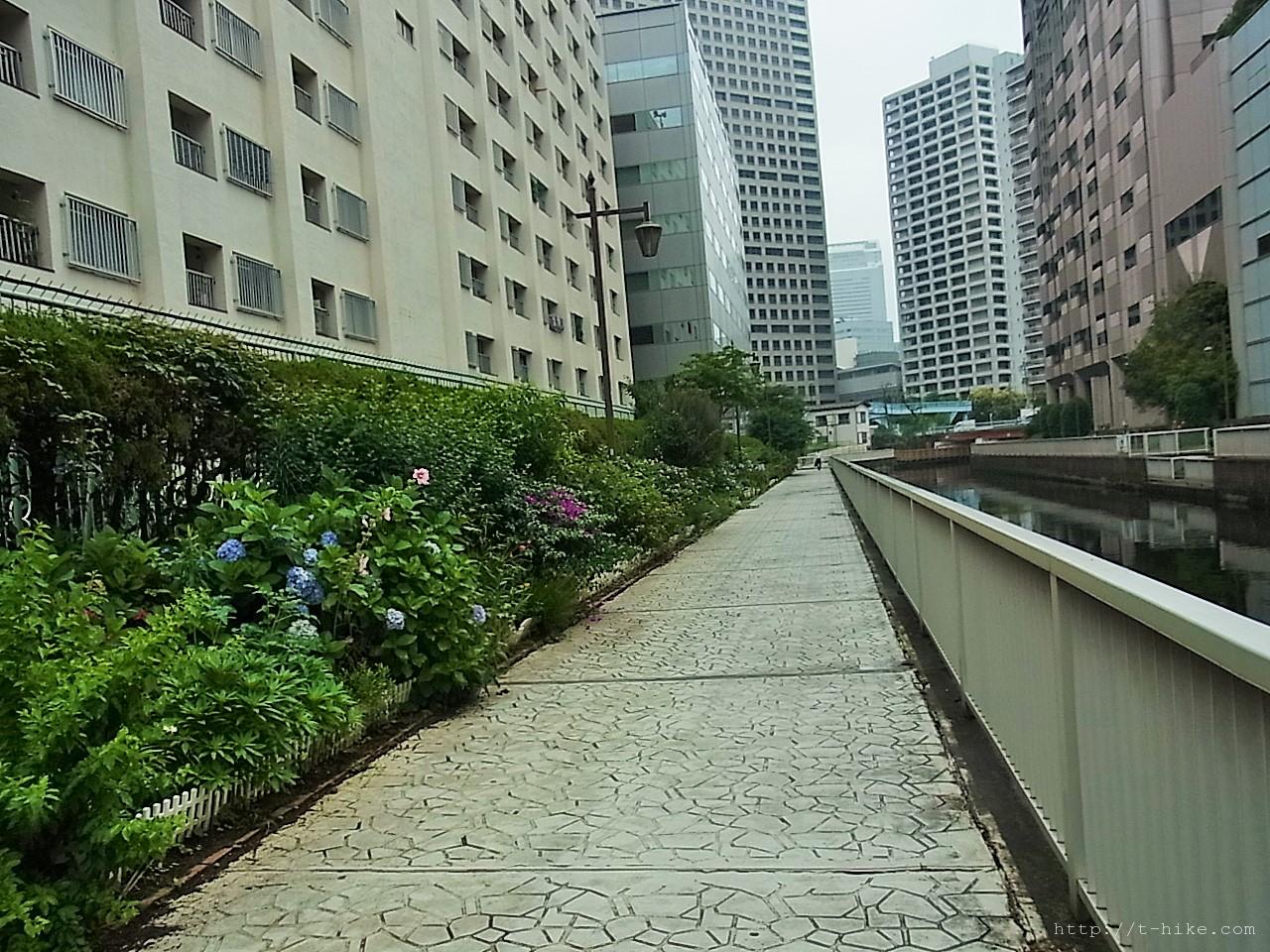 この道の奥は芝浦中央公園になっています。品川駅にショートカットできます。