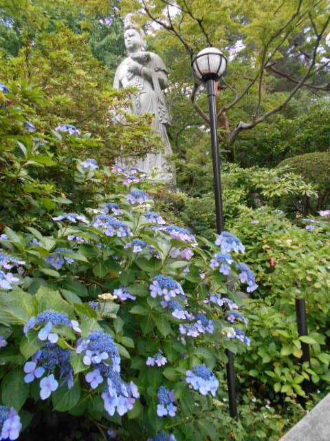 観音様とあじさい。